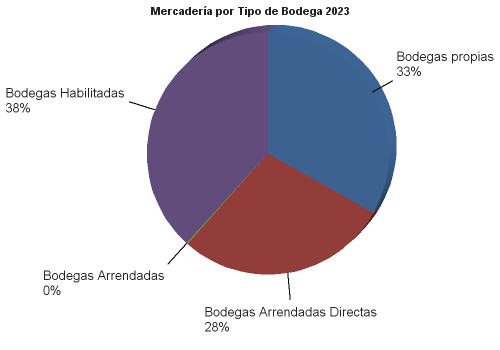 | | | 2023 | 2022 | | MERCANCIAS ALMACENADAS | 2,190,818.65 | 2,484,255.05 | | Bodegas propias | 726,412.81 | 520,916.03 | | Mercaderías en Depósito Financiero | 84,093.80 | 119,456.44 | | Mercaderías en Depósito Fiscal | 0.00 | 0.00 | | Mercaderías en Depósito Simple | 642,319.01 | 401,459.59 | | | 0.00 | | Bodegas Arrendadas Directas | 621,938.90 | 812,239.78 | | Mercaderías en Depósito Financiero | 19,494.12 | 10,022.38 | | Mercaderías en Depósito Fiscal | 597,622.73 | 799,347.19 | | Mercaderías en Depósito Simple | 4,822.05 | 2,870.21 | | | 0.00 | | Bodegas Arrendadas | 4,634.06 | 1,925.02 | | Mercaderías en Depósito Financiero | 0.00 | 0.00 | | Mercaderías en Depósito Fiscal | 4,634.06 | 1,925.02 | | Mercaderías en Depósito Corriente | 0.00 | 0.00 | | | 0.00 | | Bodegas Habilitadas | 837,832.87 | 1,149,174.22 | | Mercaderías en Depósito Financiero | 833,217.27 | 1,053,500.12 | | Mercaderías en Depósito Corriente | 4,615.60 | 95,674.10 | | | 0.00 | | SEGUROS | 4,562,276.39 | 4,492,640.32 | | Seguros contratados | 4,562,276.39 | 4,492,640.32 | | De mercadería | 4,545,424.19 | 4,475,873.42 | | De bienes inmuebles y muebles propios | 4,520.78 | 4,435.48 | | De bienes inmuebles y muebles ajenos | 0.00 | 0.00 | | Otros seguros | 12,331.42 | 12,331.42 | | FIANZAS | 5,448.02 | 5,345.22 | | Fianzas contratadas | 5,448.02 | 5,345.22 | | A favor de la Dirección General de Aduanas | 5,448.02 | 5,345.22 | | De fidelidad de funcionarios y empleados | 0.00 | 0.00 | | Otras fianzas | 0.00 | 0.00 |