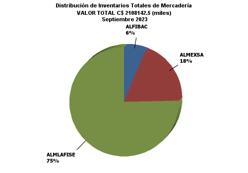 | | | | ALMLAFISE | ALMEXSA | ALFIBAC | TOTALES | | | | | | | | MERCANCIAS ALMACENADAS | 1,589,099.37 | 387,821.81 | 131,221.32 | 2,108,142.50 | | Bodegas propias | 794,207.28 | 0.00 | 0.00 | 794,207.28 | | Mercaderías en Depósito Financiero | 184,606.69 | 0.00 | 0.00 | 184,606.69 | | Mercaderías en Depósito Fiscal | 0.00 | 0.00 | 0.00 | 0.00 | | Mercaderías en Depósito Simple | 609,600.59 | 0.00 | 0.00 | 609,600.59 | | Bodegas Arrendadas Directas | 645,511.71 | 0.00 | 0.00 | 645,511.71 | | Mercaderías en Depósito Financiero | 23,593.06 | 0.00 | 0.00 | 23,593.06 | | Mercaderías en Depósito Fiscal | 617,171.96 | 0.00 | 0.00 | 617,171.96 | | Mercaderías en Depósito Simple | 4,746.68 | 0.00 | 0.00 | 4,746.68 | | Bodegas Arrendadas | 3,751.36 | 387,821.81 | 131,221.32 | 522,794.50 | | Mercaderías en Depósito Financiero | 0.00 | 246,701.75 | 60,150.00 | 306,851.75 | | Mercaderías en Depósito Fiscal | 3,751.36 | 0.00 | 0.00 | 3,751.36 | | Mercaderías en Depósito Corriente | 0.00 | 141,120.06 | 71,071.32 | 212,191.39 | | Bodegas Habilitadas | 145,629.02 | 0.00 | 0.00 | 145,629.02 | | Mercaderías en Depósito Financiero | 71,295.31 | 0.00 | 0.00 | 71,295.31 | | Mercaderías en Depósito Corriente | 74,333.71 | 0.00 | 0.00 | 74,333.71 | | SEGUROS | 3,819,995.37 | 1,422,423.67 | 1,399,139.63 | 6,641,558.68 | | Seguros contratados | 3,819,995.37 | 1,422,423.67 | 1,399,139.63 | 6,641,558.68 | | De mercadería | 3,803,116.73 | 1,322,772.38 | 1,380,932.28 | 6,506,821.39 | | De bienes inmuebles y muebles propios | 4,547.23 | 79,557.66 | 0.00 | 84,104.89 | | De bienes inmuebles y muebles ajenos | 0.00 | 0.00 | 0.00 | 0.00 | | Otros seguros | 12,331.42 | 20,093.63 | 18,207.35 | 50,632.41 | | FIANZAS | 5,479.89 | 0.00 | 0.00 | 5,479.89 | | Fianzas contratadas | 5,479.89 | 0.00 | 0.00 | 5,479.89 | | A favor de la Dirección General de Aduanas | 5,479.89 | 0.00 | 0.00 | 5,479.89 | | De fidelidad de funcionarios y empleados | 0.00 | 0.00 | 0.00 | 0.00 | | Otras fianzas | 0.00 | 0.00 | 0.00 | 0.00 |