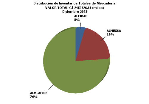 | | | | ALMLAFISE | ALMEXSA | ALFIBAC | TOTALES | | | | | | | | MERCANCIAS ALMACENADAS | 1,638,376.15 | 416,858.93 | 97,591.80 | 2,152,826.87 | | Bodegas propias | 797,456.86 | 0.00 | 0.00 | 797,456.86 | | Mercaderías en Depósito Financiero | 148,104.34 | 0.00 | 0.00 | 148,104.34 | | Mercaderías en Depósito Fiscal | 0.00 | 0.00 | 0.00 | 0.00 | | Mercaderías en Depósito Simple | 649,352.51 | 0.00 | 0.00 | 649,352.51 | | Bodegas Arrendadas Directas | 518,298.91 | 0.00 | 0.00 | 518,298.91 | | Mercaderías en Depósito Financiero | 34,340.64 | 0.00 | 0.00 | 34,340.64 | | Mercaderías en Depósito Fiscal | 480,932.11 | 0.00 | 0.00 | 480,932.11 | | Mercaderías en Depósito Simple | 3,026.17 | 0.00 | 0.00 | 3,026.17 | | Bodegas Arrendadas | 2,328.20 | 416,858.93 | 97,591.80 | 516,778.93 | | Mercaderías en Depósito Financiero | 0.00 | 352,758.60 | 76,562.58 | 429,321.18 | | Mercaderías en Depósito Fiscal | 2,328.20 | 0.00 | 0.00 | 2,328.20 | | Mercaderías en Depósito Corriente | 0.00 | 64,100.32 | 21,029.21 | 85,129.54 | | Bodegas Habilitadas | 320,292.17 | 0.00 | 0.00 | 320,292.17 | | Mercaderías en Depósito Financiero | 290,290.58 | 0.00 | 0.00 | 290,290.58 | | Mercaderías en Depósito Corriente | 30,001.59 | 0.00 | 0.00 | 30,001.59 | | SEGUROS | 4,162,687.57 | 1,473,568.05 | 1,402,651.60 | 7,038,907.22 | | Seguros contratados | 4,162,687.57 | 1,473,568.05 | 1,402,651.60 | 7,038,907.22 | | De mercadería | 4,145,797.51 | 1,373,045.01 | 1,384,398.54 | 6,903,241.06 | | De bienes inmuebles y muebles propios | 4,558.64 | 79,757.35 | 0.00 | 84,316.00 | | De bienes inmuebles y muebles ajenos | 0.00 | 0.00 | 0.00 | 0.00 | | Otros seguros | 12,331.42 | 20,765.69 | 18,253.06 | 51,350.17 | | FIANZAS | 5,493.64 | 0.00 | 0.00 | 5,493.64 | | Fianzas contratadas | 5,493.64 | 0.00 | 0.00 | 5,493.64 | | A favor de la Dirección General de Aduanas | 5,493.64 | 0.00 | 0.00 | 5,493.64 | | De fidelidad de funcionarios y empleados | 0.00 | 0.00 | 0.00 | 0.00 | | Otras fianzas | 0.00 | 0.00 | 0.00 | 0.00 |