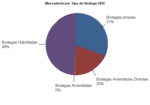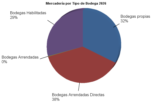 | | | 2026 | 2025 | | MERCANCIAS ALMACENADAS | 2,279,480.17 | 2,851,590.28 | | Bodegas propias | 735,077.19 | 873,860.30 | | Mercaderías en Depósito Financiero | 144,888.39 | 159,078.08 | | Mercaderías en Depósito Fiscal | 0.00 | 0.00 | | Mercaderías en Depósito Simple | 590,188.80 | 714,782.22 | | | 0.00 | | Bodegas Arrendadas Directas | 873,204.30 | 570,572.66 | | Mercaderías en Depósito Financiero | 66,758.51 | 15,413.82 | | Mercaderías en Depósito Fiscal | 804,809.81 | 553,518.56 | | Mercaderías en Depósito Simple | 1,635.98 | 1,640.28 | | | 0.00 | | Bodegas Arrendadas | 4,830.70 | 4,988.61 | | Mercaderías en Depósito Financiero | 0.00 | 0.00 | | Mercaderías en Depósito Fiscal | 4,830.70 | 4,988.61 | | Mercaderías en Depósito Corriente | 0.00 | 0.00 | | | 0.00 | | Bodegas Habilitadas | 666,367.99 | 1,402,168.70 | | Mercaderías en Depósito Financiero | 661,360.52 | 1,323,162.67 | | Mercaderías en Depósito Corriente | 5,007.46 | 79,006.03 | | | 0.00 | | SEGUROS | 6,844,978.06 | 5,196,078.82 | | Seguros contratados | 6,844,978.06 | 5,196,078.82 | | De mercadería | 6,828,087.99 | 5,179,188.76 | | De bienes inmuebles y muebles propios | 4,558.64 | 4,558.64 | | De bienes inmuebles y muebles ajenos | 0.00 | 0.00 | | Otros seguros | 12,331.42 | 12,331.42 | | FIANZAS | 5,493.64 | 5,493.64 | | Fianzas contratadas | 5,493.64 | 5,493.64 | | A favor de la Dirección General de Aduanas | 5,493.64 | 5,493.64 | | De fidelidad de funcionarios y empleados | 0.00 | 0.00 | | Otras fianzas | 0.00 | 0.00 |