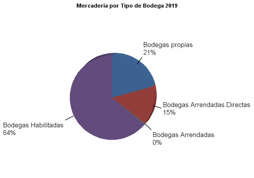 | | | 2019 | | MERCANCIAS ALMACENADAS | 2,900,792.77 | | Bodegas propias | 600,241.58 | | Mercaderías en Depósito Financiero | 44,085.83 | | Mercaderías en Depósito Fiscal | 139,472.22 | | Mercaderías en Depósito Simple | 416,683.53 | | | | Bodegas Arrendadas Directas | 432,360.93 | | Mercaderías en Depósito Financiero | 64,529.04 | | Mercaderías en Depósito Fiscal | 364,573.94 | | Mercaderías en Depósito Simple | 3,257.94 | | | | Bodegas Arrendadas | 3,274.32 | | Mercaderías en Depósito Financiero | 0.00 | | Mercaderías en Depósito Fiscal | 3,274.32 | | Mercaderías en Depósito Corriente | 0.00 | | | | Bodegas Habilitadas | 1,864,915.93 | | Mercaderías en Depósito Financiero | 1,057,332.84 | | Mercaderías en Depósito Fiscal | 54,840.86 | | Mercaderías en Depósito Corriente | 752,742.23 | | | | SEGUROS | 8,913,706.93 | | Seguros contratados | 8,913,706.93 | | De mercadería | 7,685,493.44 | | De bienes inmuebles y muebles propios | 167,245.39 | | De bienes inmuebles y muebles ajenos | 0.00 | | Otros seguros | 1,060,968.11 | | FIANZAS | 14,663.92 | | Fianzas contratadas | 14,663.92 | | A favor de la Dirección General de Aduanas | 11,405.28 | | De fidelidad de funcionarios y empleados | 3,258.65 | | Otras fianzas | 0.00 |