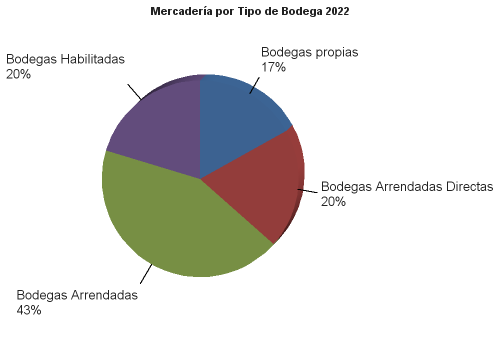 | | | 2023 | 2022 | | MERCANCIAS ALMACENADAS | 3,905,670.45 | 3,780,522.72 | | Bodegas propias | 808,407.14 | 639,992.56 | | Mercaderías en Depósito Financiero | 223,202.19 | 114,281.98 | | Mercaderías en Depósito Fiscal | 0.00 | 0.00 | | Mercaderías en Depósito Simple | 585,204.95 | 525,710.58 | | | 0.00 | | Bodegas Arrendadas Directas | 749,385.94 | 742,058.24 | | Mercaderías en Depósito Financiero | 15,491.85 | 113,550.84 | | Mercaderías en Depósito Fiscal | 733,678.03 | 626,640.75 | | Mercaderías en Depósito Simple | 216.06 | 1,866.64 | | | 0.00 | | Bodegas Arrendadas | 1,591,903.99 | 1,629,574.25 | | Mercaderías en Depósito Financiero | 1,103,400.89 | 1,239,971.75 | | Mercaderías en Depósito Fiscal | 4,518.44 | 4,149.94 | | Mercaderías en Depósito Corriente | 483,984.66 | 385,452.56 | | | 0.00 | | Bodegas Habilitadas | 755,973.39 | 768,897.67 | | Mercaderías en Depósito Financiero | 726,985.61 | 679,509.82 | | Mercaderías en Depósito Corriente | 28,987.78 | 89,387.84 | | | 0.00 | | SEGUROS | 7,835,454.02 | 7,568,801.63 | | Seguros contratados | 7,835,454.02 | 7,568,801.63 | | De mercadería | 7,700,334.55 | 7,439,956.65 | | De bienes inmuebles y muebles propios | 83,825.63 | 81,163.92 | | De bienes inmuebles y muebles ajenos | 0.00 | 0.00 | | Otros seguros | 51,293.84 | 47,681.06 | | FIANZAS | 5,461.70 | 5,371.96 | | Fianzas contratadas | 5,461.70 | 5,371.96 | | A favor de la Dirección General de Aduanas | 5,461.70 | 5,371.96 | | De fidelidad de funcionarios y empleados | 0.00 | 0.00 | | Otras fianzas | 0.00 | 0.00 |