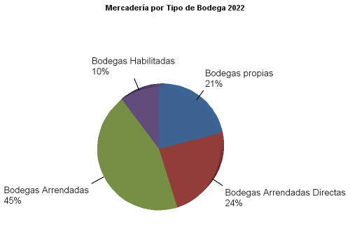 | | | 2023 | 2022 | | MERCANCIAS ALMACENADAS | 2,823,431.54 | 2,591,028.88 | | Bodegas propias | 674,557.39 | 545,924.01 | | Mercaderías en Depósito Financiero | 144,806.73 | 104,609.52 | | Mercaderías en Depósito Fiscal | 0.00 | 0.00 | | Mercaderías en Depósito Simple | 529,750.65 | 441,314.49 | | | 0.00 | | Bodegas Arrendadas Directas | 694,199.64 | 622,473.88 | | Mercaderías en Depósito Financiero | 22,053.98 | 17,423.46 | | Mercaderías en Depósito Fiscal | 671,141.93 | 603,399.93 | | Mercaderías en Depósito Simple | 1,003.73 | 1,650.49 | | | 0.00 | | Bodegas Arrendadas | 1,141,484.42 | 1,157,524.48 | | Mercaderías en Depósito Financiero | 965,188.06 | 730,740.01 | | Mercaderías en Depósito Fiscal | 4,145.82 | 3,517.08 | | Mercaderías en Depósito Corriente | 172,150.54 | 423,267.39 | | | 0.00 | | Bodegas Habilitadas | 313,190.08 | 265,106.52 | | Mercaderías en Depósito Financiero | 251,302.85 | 229,573.27 | | Mercaderías en Depósito Corriente | 61,887.24 | 35,533.25 | | | 0.00 | | SEGUROS | 7,749,698.89 | 7,555,837.33 | | Seguros contratados | 7,749,698.89 | 7,555,837.33 | | De mercadería | 7,614,676.23 | 7,427,986.10 | | De bienes inmuebles y muebles propios | 83,965.14 | 81,433.16 | | De bienes inmuebles y muebles ajenos | 0.00 | 0.00 | | Otros seguros | 51,057.52 | 46,418.07 | | FIANZAS | 5,470.78 | 5,389.78 | | Fianzas contratadas | 5,470.78 | 5,389.78 | | A favor de la Dirección General de Aduanas | 5,470.78 | 5,389.78 | | De fidelidad de funcionarios y empleados | 0.00 | 0.00 | | Otras fianzas | 0.00 | 0.00 |