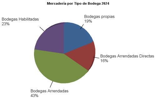 | | | 2024 | 2023 | | MERCANCIAS ALMACENADAS | 4,050,328.92 | 3,905,670.45 | | Bodegas propias | 768,316.49 | 808,407.14 | | Mercaderías en Depósito Financiero | 249,220.44 | 223,202.19 | | Mercaderías en Depósito Fiscal | 0.00 | 0.00 | | Mercaderías en Depósito Simple | 519,096.06 | 585,204.95 | | | 0.00 | | Bodegas Arrendadas Directas | 634,645.92 | 749,385.94 | | Mercaderías en Depósito Financiero | 35,825.71 | 15,491.85 | | Mercaderías en Depósito Fiscal | 595,192.56 | 733,678.03 | | Mercaderías en Depósito Simple | 3,627.65 | 216.06 | | | 0.00 | | Bodegas Arrendadas | 1,729,638.86 | 1,591,903.99 | | Mercaderías en Depósito Financiero | 1,330,855.24 | 1,103,400.89 | | Mercaderías en Depósito Fiscal | 1,896.60 | 4,518.44 | | Mercaderías en Depósito Corriente | 396,887.03 | 483,984.66 | | | 0.00 | | Bodegas Habilitadas | 917,727.65 | 755,973.39 | | Mercaderías en Depósito Financiero | 868,283.86 | 726,985.61 | | Mercaderías en Depósito Corriente | 49,443.79 | 28,987.78 | | | 0.00 | | SEGUROS | 7,305,356.08 | 7,835,454.02 | | Seguros contratados | 7,305,356.08 | 7,835,454.02 | | De mercadería | 7,168,327.74 | 7,700,334.55 | | De bienes inmuebles y muebles propios | 83,957.65 | 83,825.63 | | De bienes inmuebles y muebles ajenos | 0.00 | 0.00 | | Otros seguros | 53,070.68 | 51,293.84 | | FIANZAS | 5,493.64 | 5,461.70 | | Fianzas contratadas | 5,493.64 | 5,461.70 | | A favor de la Dirección General de Aduanas | 5,493.64 | 5,461.70 | | De fidelidad de funcionarios y empleados | 0.00 | 0.00 | | Otras fianzas | 0.00 | 0.00 |