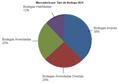 | | | 2024 | 2023 | | MERCANCIAS ALMACENADAS | 2,231,878.16 | 1,851,198.46 | | Bodegas propias | 838,216.55 | 767,319.29 | | Mercaderías en Depósito Financiero | 84,873.35 | 139,591.66 | | Mercaderías en Depósito Fiscal | 0.00 | 0.00 | | Mercaderías en Depósito Simple | 753,343.20 | 627,727.63 | | | 0.00 | | Bodegas Arrendadas Directas | 568,413.14 | 578,925.89 | | Mercaderías en Depósito Financiero | 16,890.51 | 34,632.09 | | Mercaderías en Depósito Fiscal | 548,359.76 | 542,110.26 | | Mercaderías en Depósito Simple | 3,162.87 | 2,183.54 | | | 0.00 | | Bodegas Arrendadas | 555,403.87 | 333,954.78 | | Mercaderías en Depósito Financiero | 403,107.82 | 248,034.50 | | Mercaderías en Depósito Fiscal | 4,387.94 | 2,326.24 | | Mercaderías en Depósito Corriente | 147,908.11 | 83,594.04 | | | 0.00 | | Bodegas Habilitadas | 269,844.61 | 170,998.50 | | Mercaderías en Depósito Financiero | 260,958.19 | 123,737.25 | | Mercaderías en Depósito Corriente | 8,886.42 | 47,261.25 | | | 0.00 | | SEGUROS | 6,429,096.52 | 6,663,650.06 | | Seguros contratados | 6,429,096.52 | 6,663,650.06 | | De mercadería | 6,293,555.16 | 6,528,628.49 | | De bienes inmuebles y muebles propios | 82,700.04 | 84,244.86 | | De bienes inmuebles y muebles ajenos | 0.00 | 0.00 | | Otros seguros | 52,841.32 | 50,776.71 | | FIANZAS | 5,493.64 | 5,489.01 | | Fianzas contratadas | 5,493.64 | 5,489.01 | | A favor de la Dirección General de Aduanas | 5,493.64 | 5,489.01 | | De fidelidad de funcionarios y empleados | 0.00 | 0.00 | | Otras fianzas | 0.00 | 0.00 |