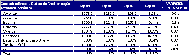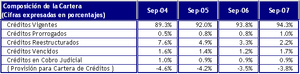 A septiembre de 2007, la cartera de créditos bruta ascendía