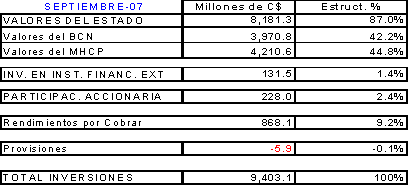 Al mes de septiembre de 2007, la cartera se encontraba
