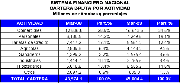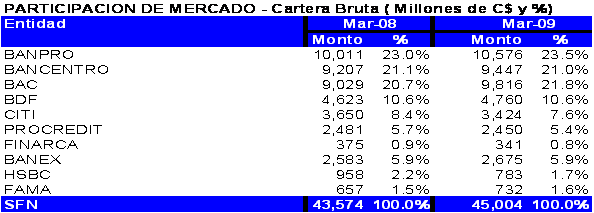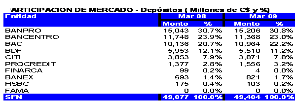 31 de marzo del año 2009, el sistema bancario nicaragüense estaba conformado
