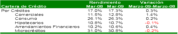 El crecimiento neto de la cartera a marzo de 2009 fue de C$1,430.3