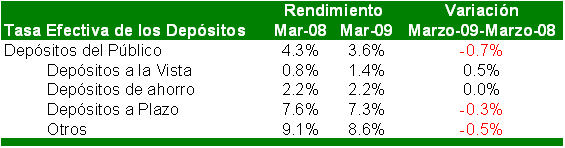 A marzo de 2009, el sistema financiero registró un saldo de