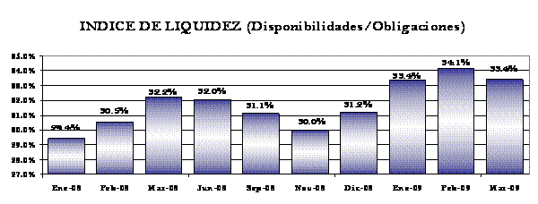 liquidez mostró una tendencia creciente en el primer trimestre de 2009. |
