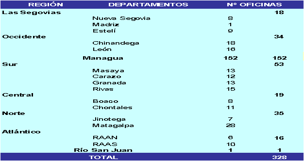 De todas las oficinas existentes, el 46.3% se radicaron en Managua.