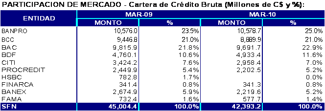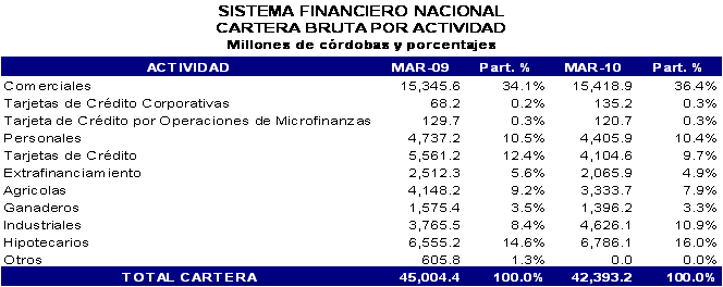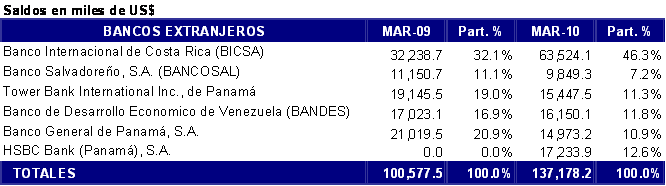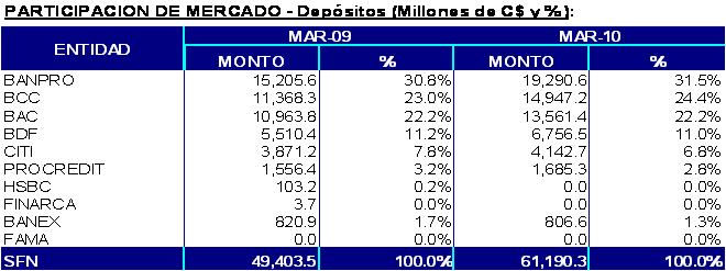 Al 31 de marzo del año 2010, el sistema bancario nicaragüense estaba