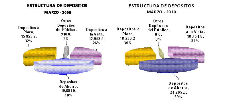 al saldo reflejado en marzo de 2009. Los depósitos del público financian en un