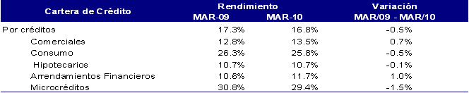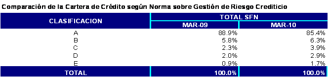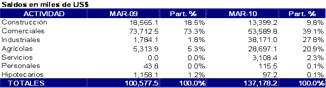 a marzo de 2010, representó el 6.4% del saldo total de cartera de créditos