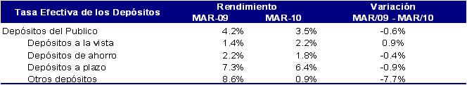 A marzo de 2010, el sistema financiero registró un saldo de