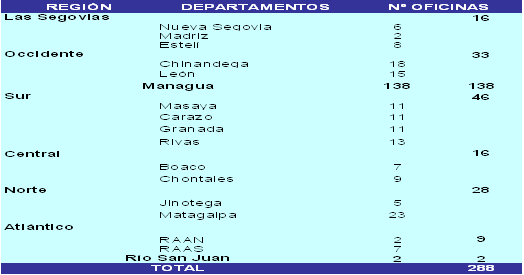 oficinas existentes, el 47.9% se radicaron en Managua.