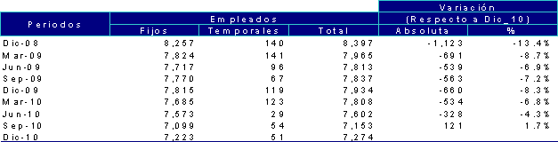 total de un 1.7% respecto a diciembre del 2009. Esta situación, implico una