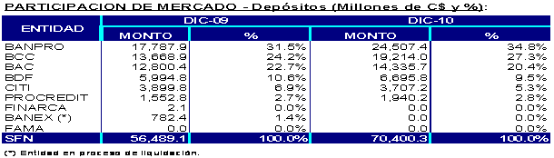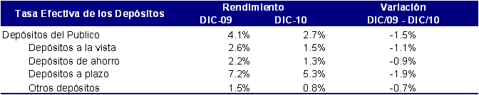 (24.6%) respecto al saldo reflejado en diciembre de 2009. Los depósitos del