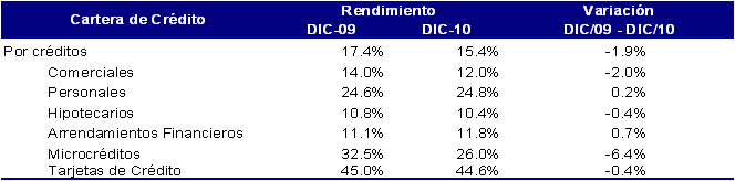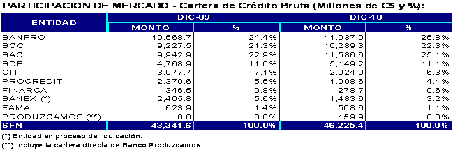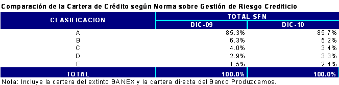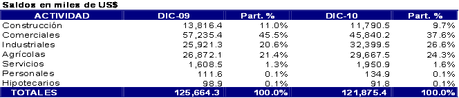 cartera de crédito por US$32.8 millones (1.6%) respecto a diciembre del 2009