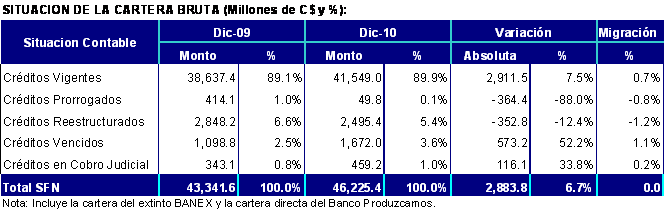 A diciembre de 2010, el sistema financiero registró un saldo de