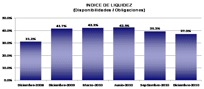 liquidez del 37.3%. Éste indicador de liquidez, ha reflejado una tendencia