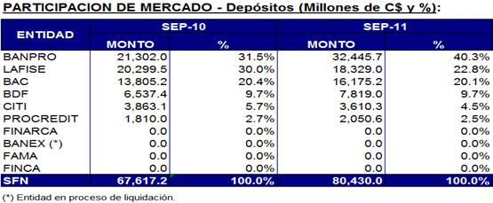 2011, el sistema bancario nicaragüense estaba conformado por seis bancos