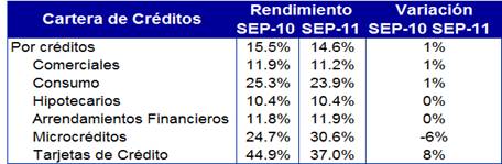 cartera de crédito por US$180.8 millones (9.0%) respecto a septiembre 2010 (US$1,981.5
