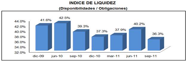 millones; determinándose una relación de liquidez de 36.3%. Éste indicador de