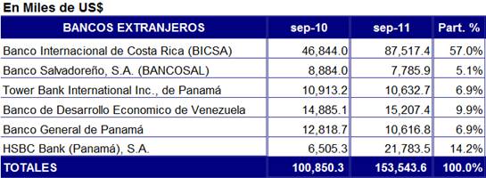 Representación de Bancos Extranjeros ascendió a US$153.5 millones, registrando