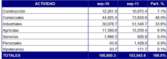 Al cierre de septiembre de 2011, la cartera de crédito de las Oficinas de