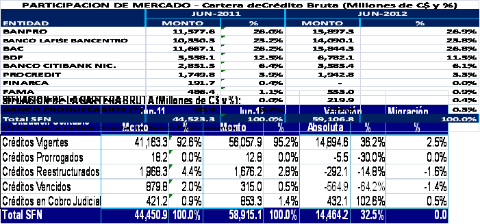 bancario nicaragüense estaba conformado por seis bancos comerciales, uno de