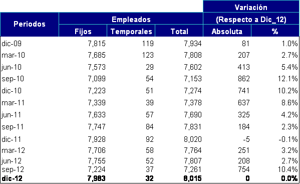 temporales. La cantidad de empleados ha reflejado un comportamiento que oscila
