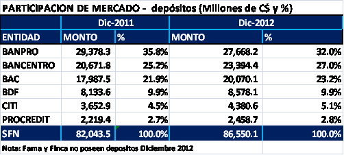 respecto al saldo total de depósitos que había a diciembre del 2011 por C$82,043.5