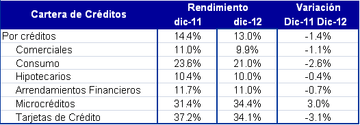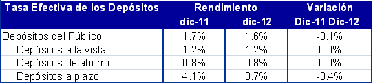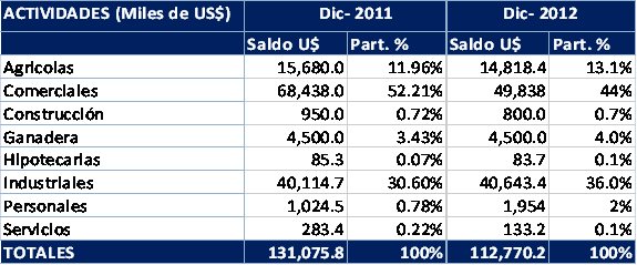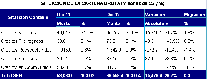 finalizar diciembre de 2012, el sistema financiero registró un saldo de