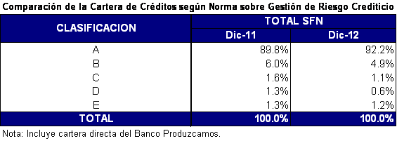 diciembre de 2011 fue de 14.7%). Este nivel de capitalización le permite a la