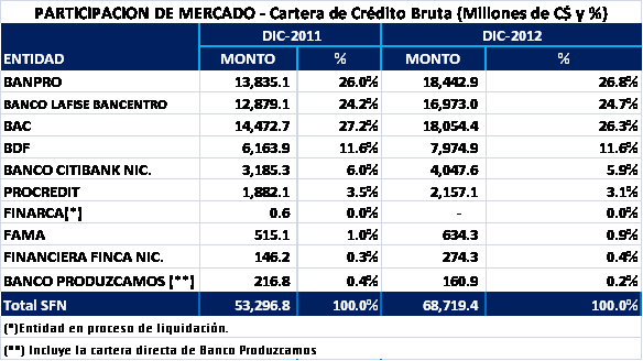 bancario nicaragüense estaba conformado por seis bancos comerciales, uno de