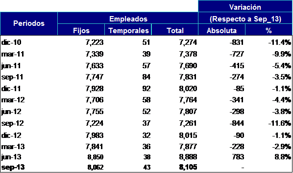 temporales. La cantidad de empleados ha reflejado un comportamiento que oscila