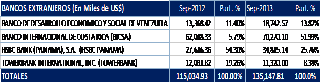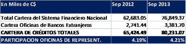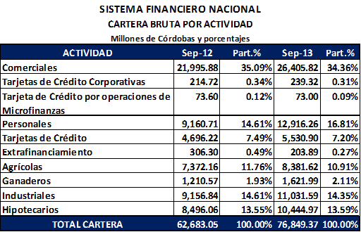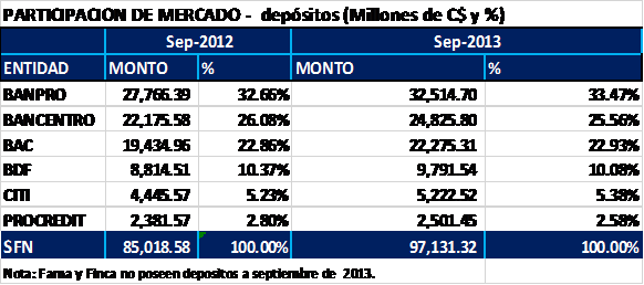septiembre de 2013, el sistema bancario nicaragüense estaba conformado por seis