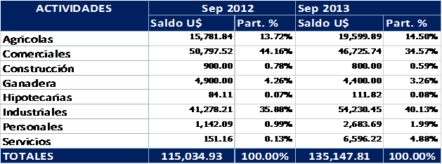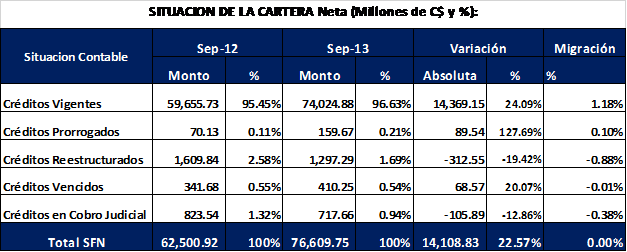 millones, el 14.20% respecto al saldo que se registraba a septiembre del 2012