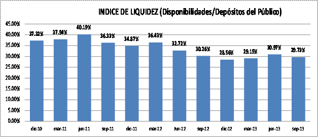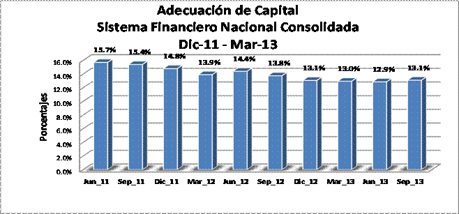 capital del 13.10% (en septiembre de 2012 fue de 13.75%). Este nivel de