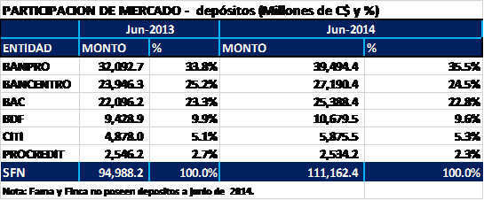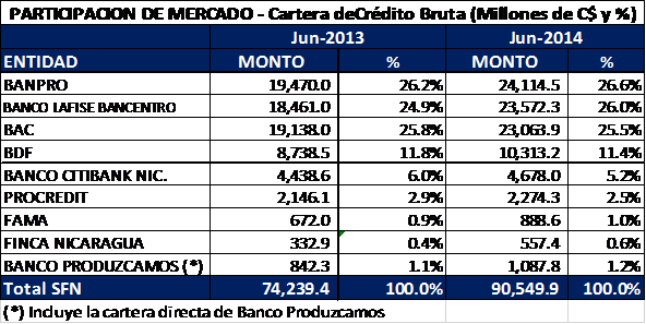 junio de 2014, el sistema bancario nicaragüense estaba conformado por seis