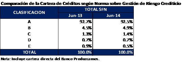 2014. Por otra parte, el 2.6% de la cartera de crédito se encuentra en las