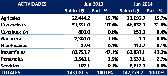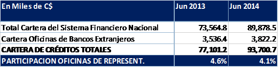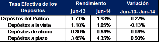 Al cierre de junio de 2014, el sistema financiero