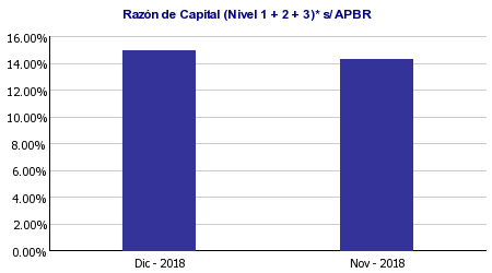 | 1.- Razón de Capital (Nivel 1 + 2 + 3)* s/ APBR | 14.96% | 17.10% | 17.00% |